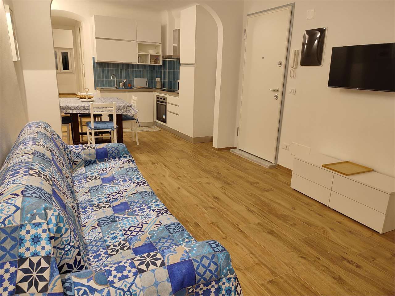 E' collocato al primo piano di palazzina inserita in pieno centro storico, a pochi passi dalla stazione ferroviaria e dal porto turistico.