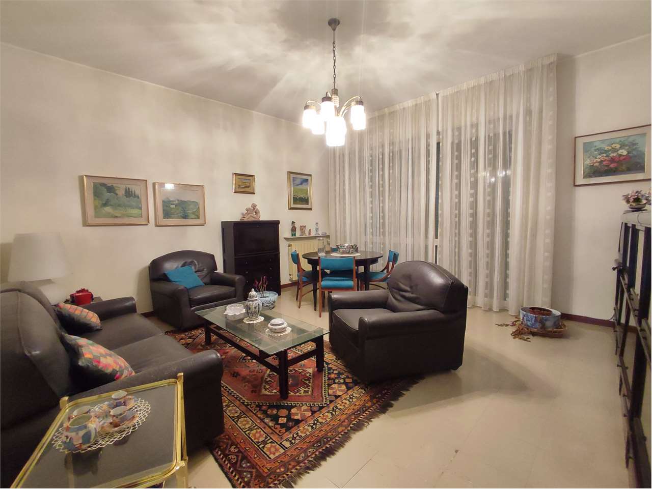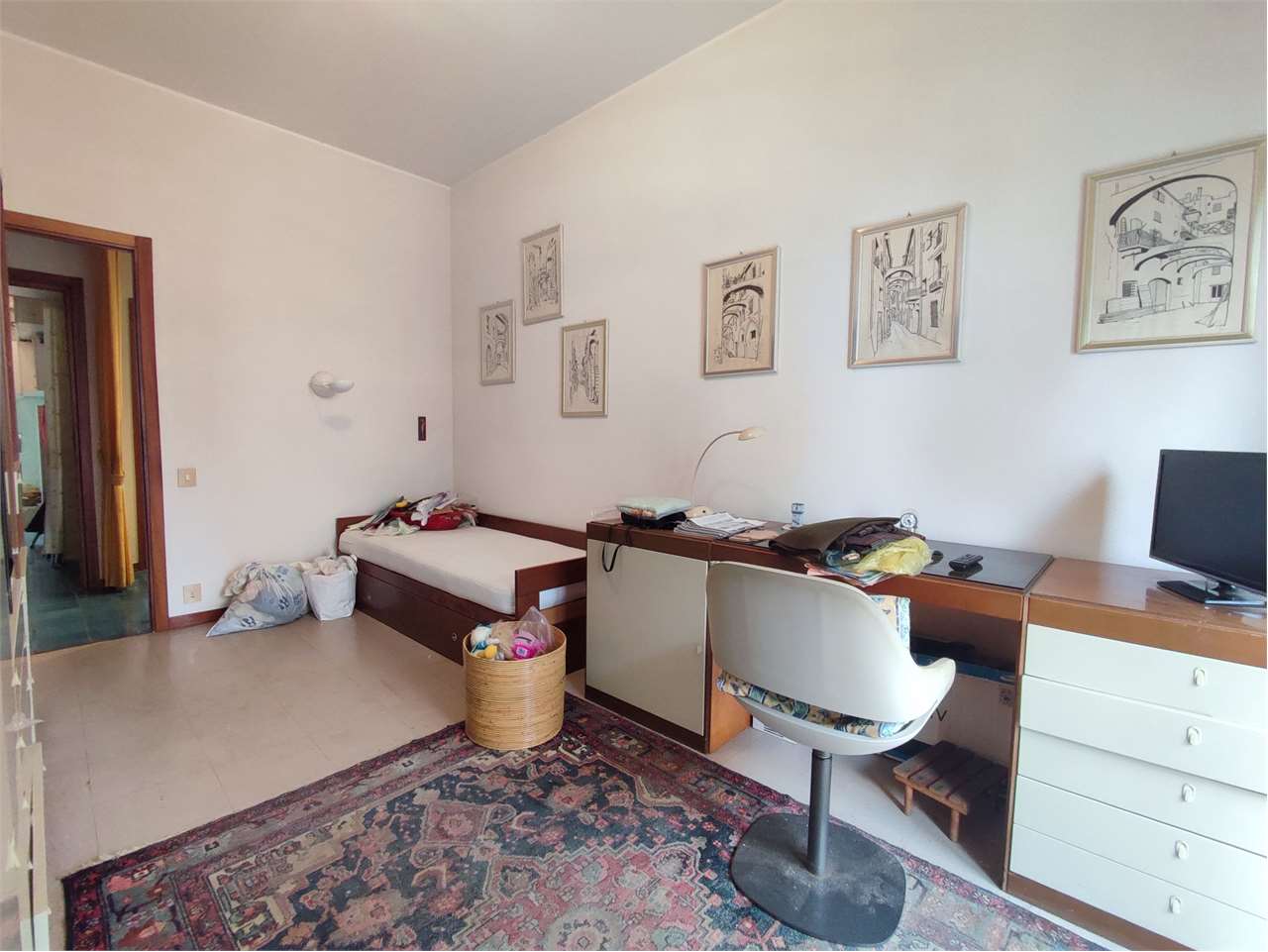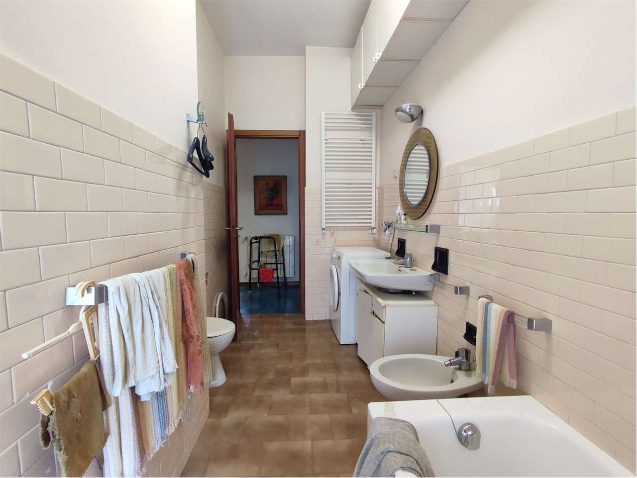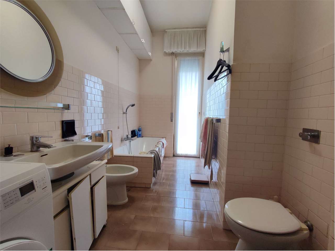 Si compone di ingresso a corridoio, ampio soggiorno, tinello e cucina, tre camere da letto, doppi servizi finestrati.