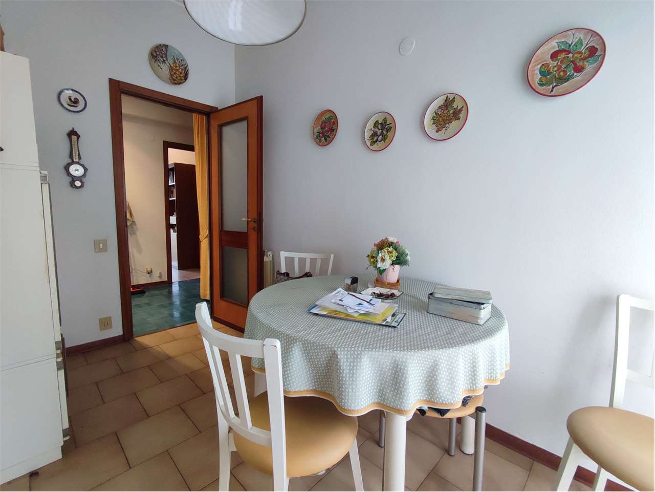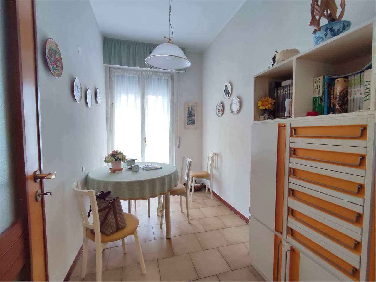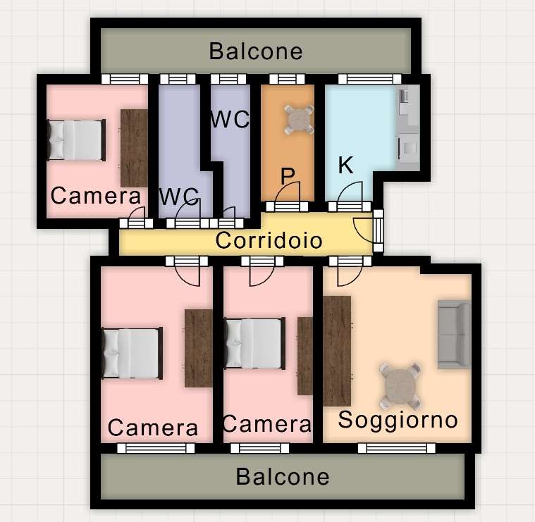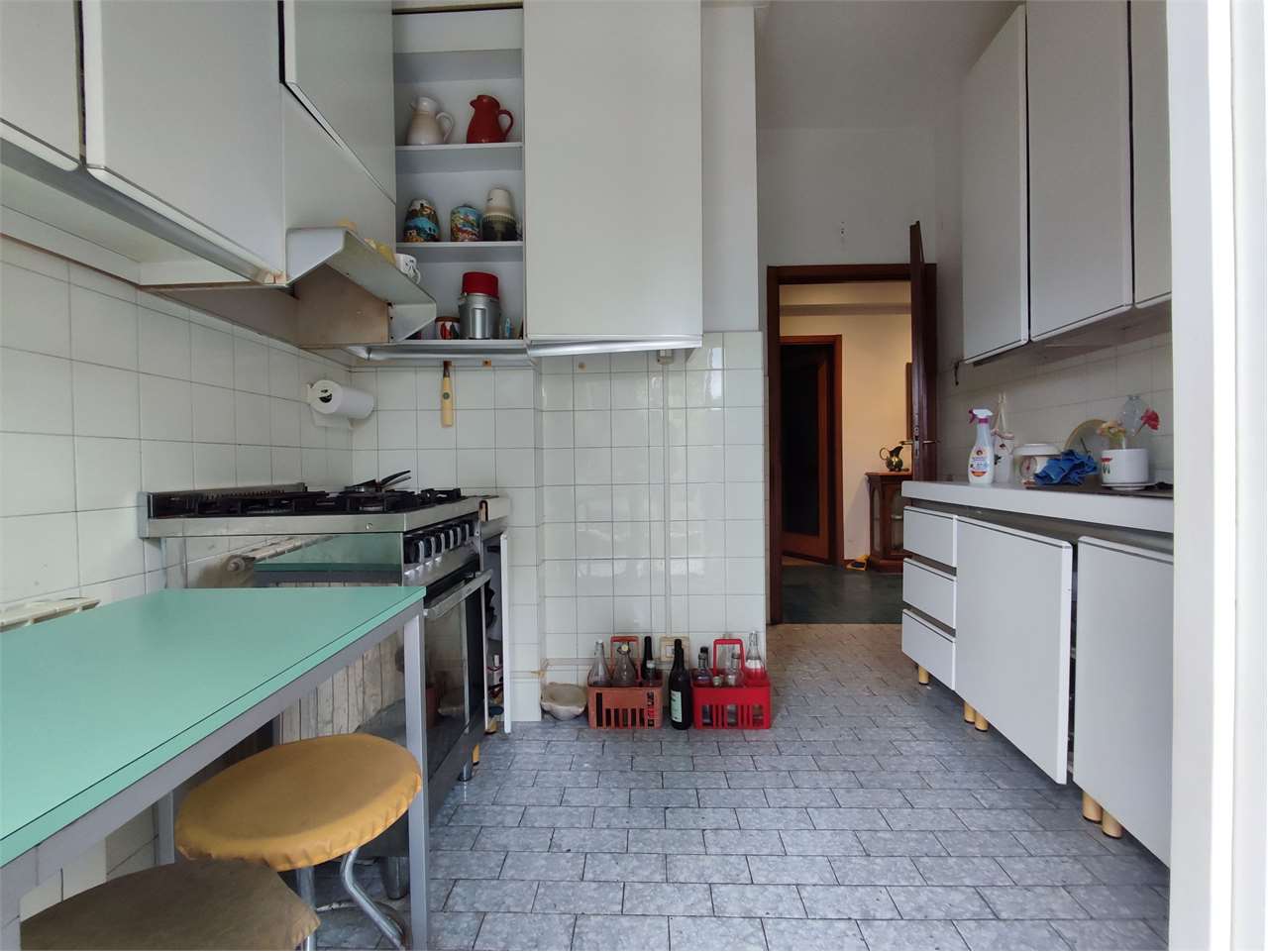 Si compone di ingresso a corridoio, ampio soggiorno, tinello e cucina, tre camere da letto, doppi servizi finestrati.