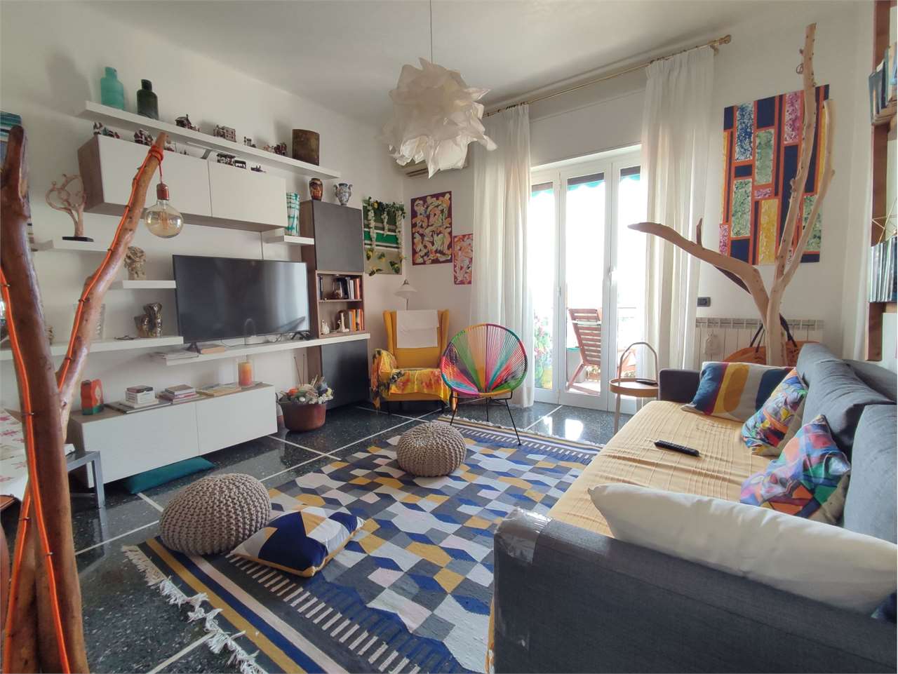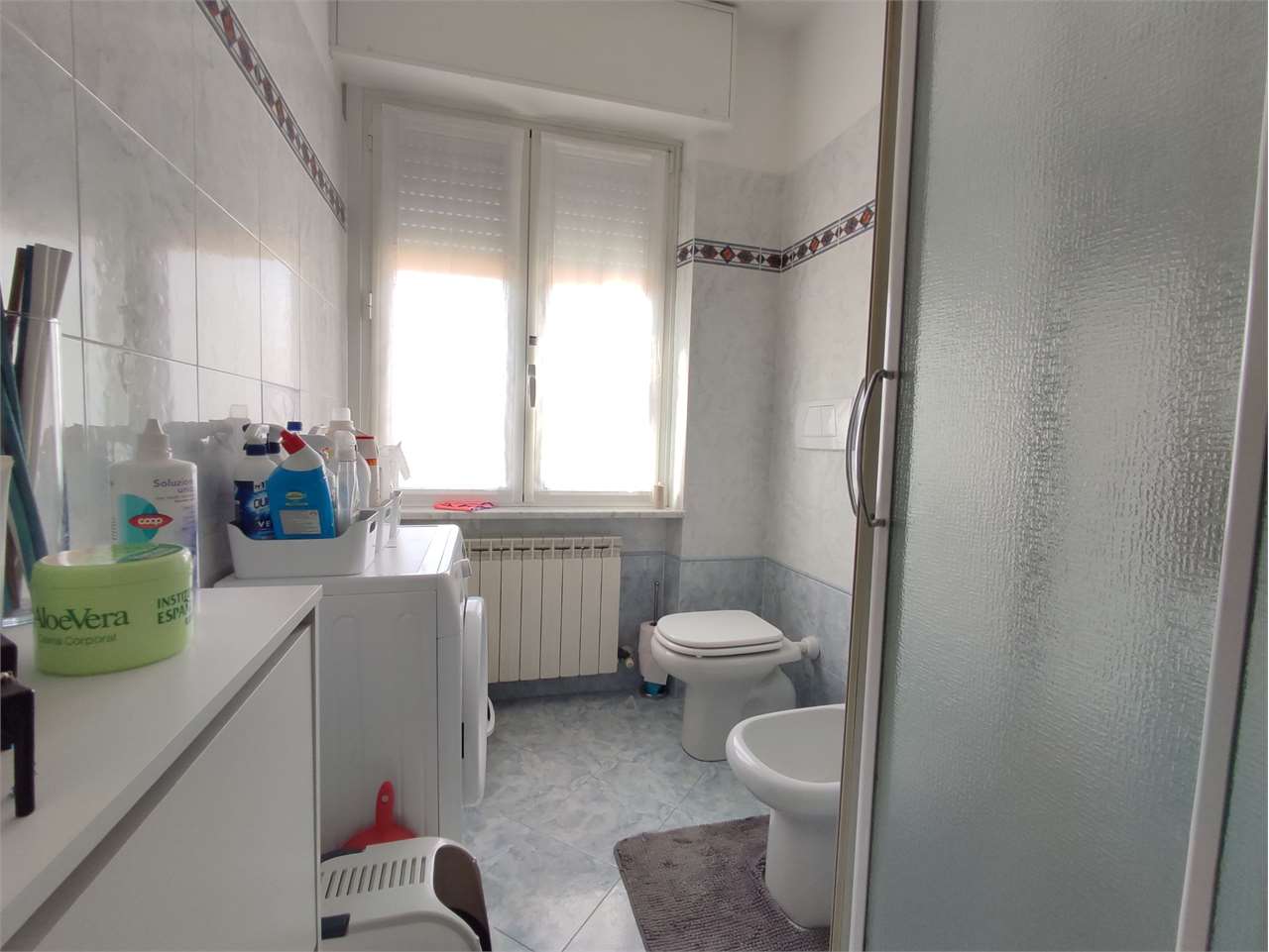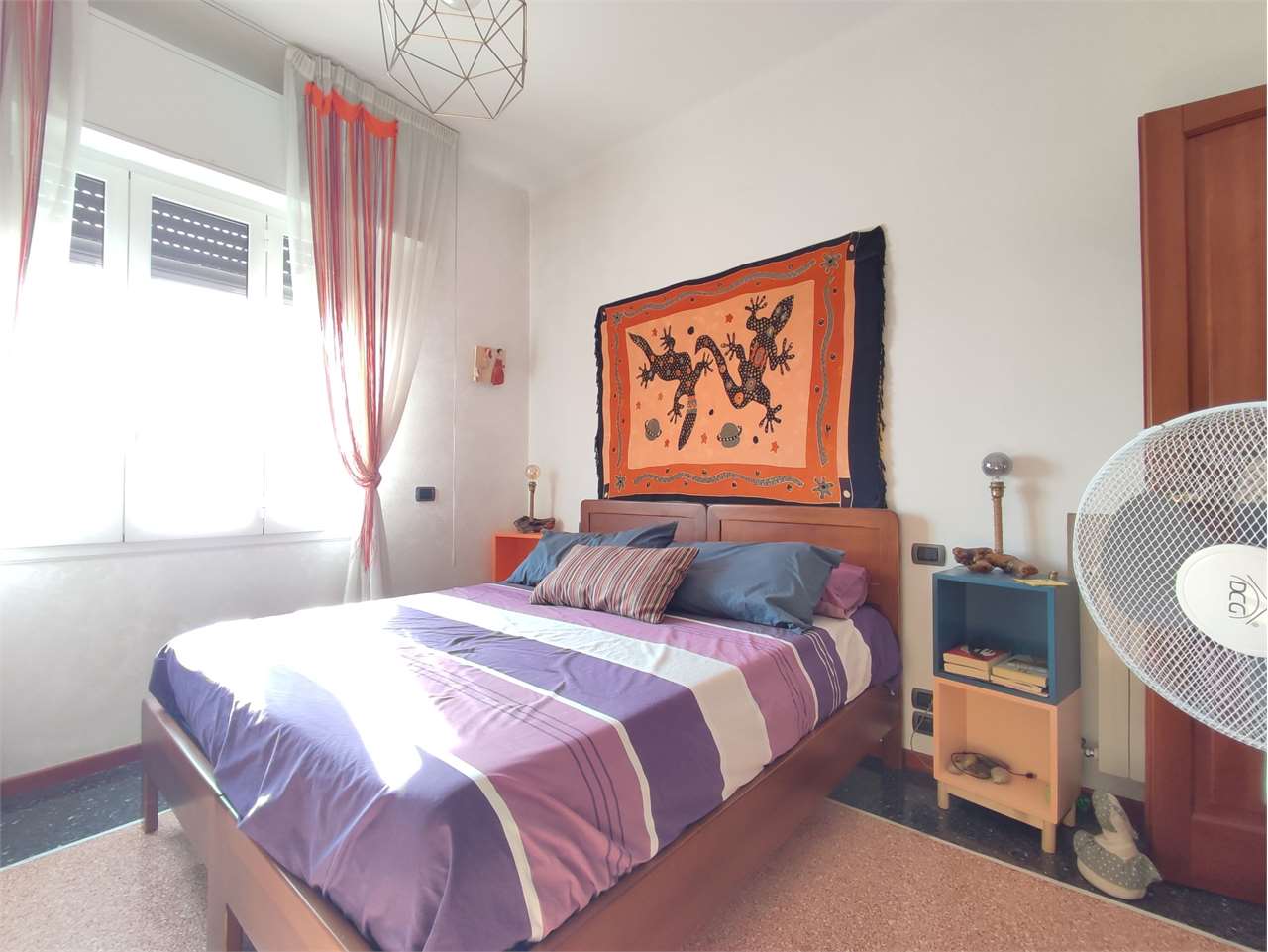 Si compone di ingresso a corridoio, soggiorno, cucina abitabile, ripostiglio, due camere da letto, bagno con box doccia.