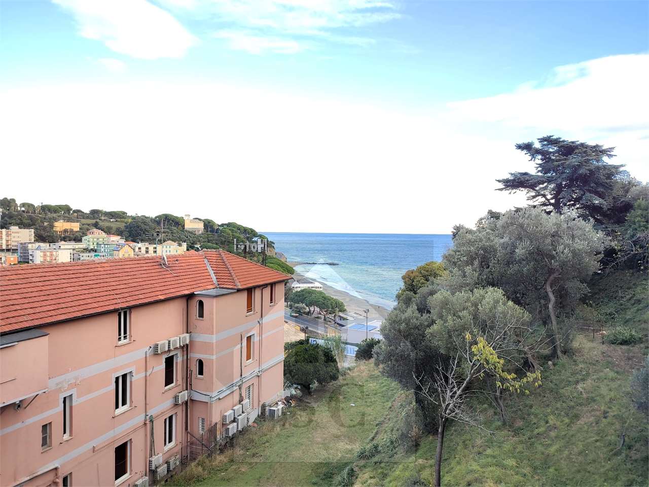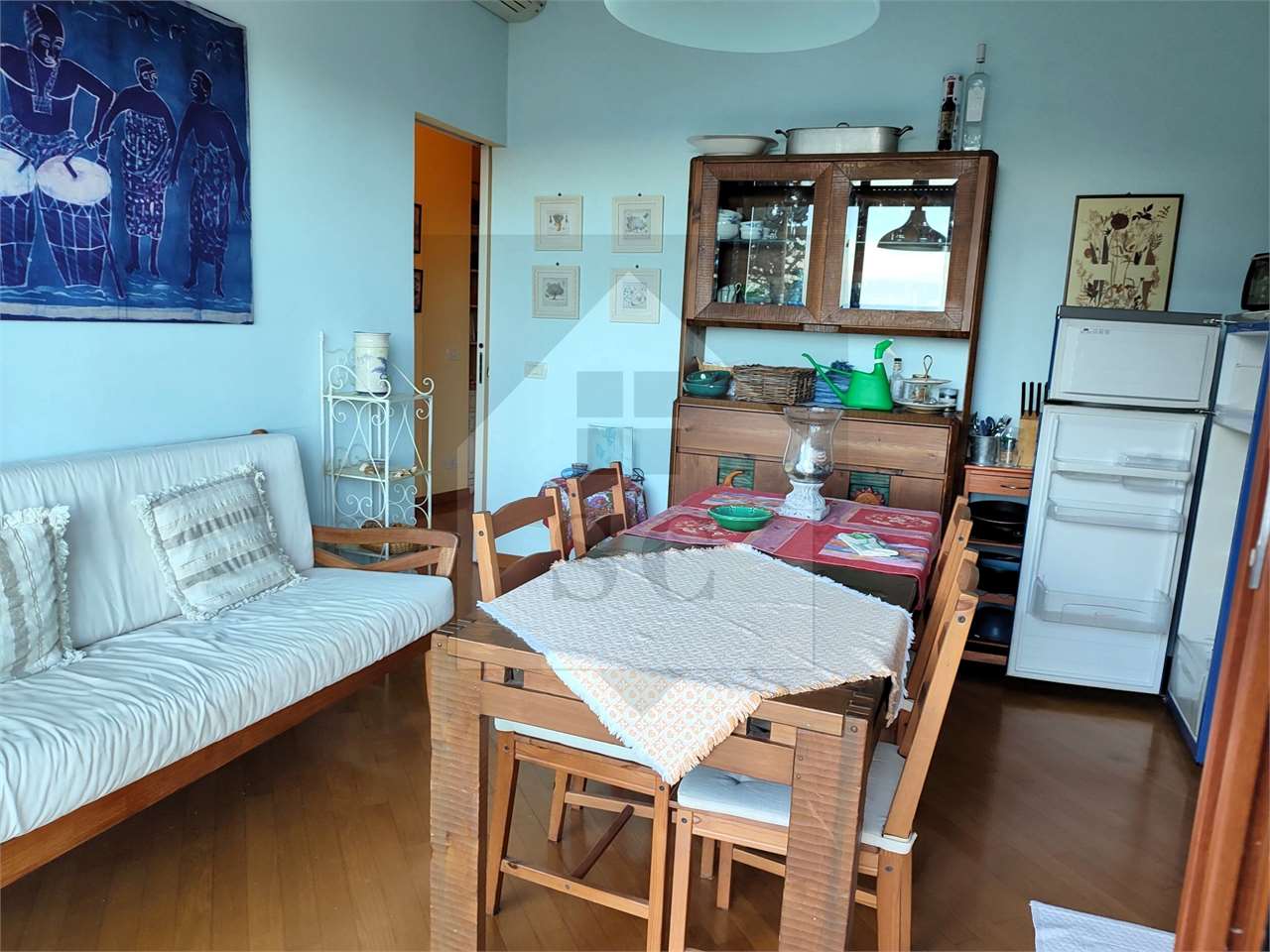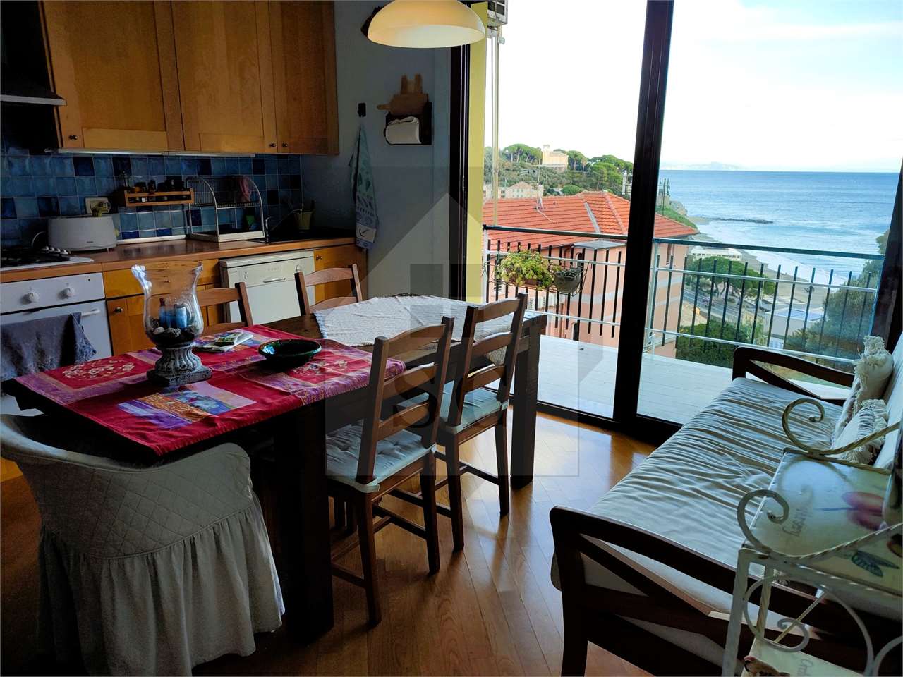 La zona giorno affaccia sul terrazzino rivolto verso la costa, con gradevole vista sul mare.