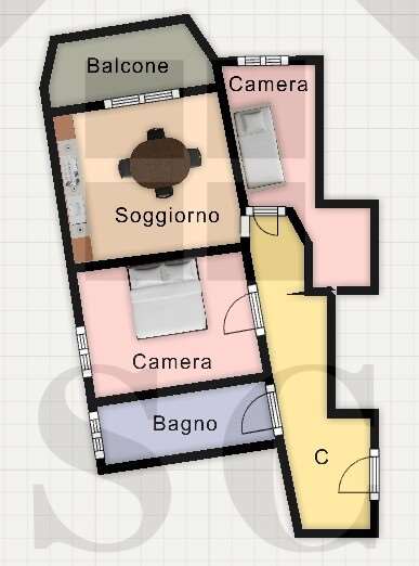 Si compone di ingresso a corridoio, zona living con cottura a vista, camera matrimoniale, camera singola con cabina armadio, bagno finestrato.