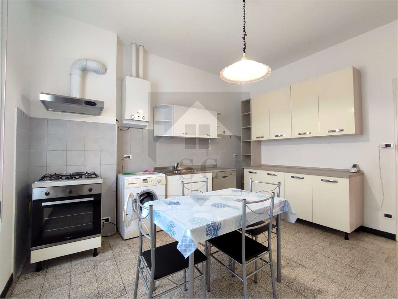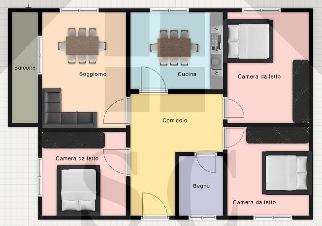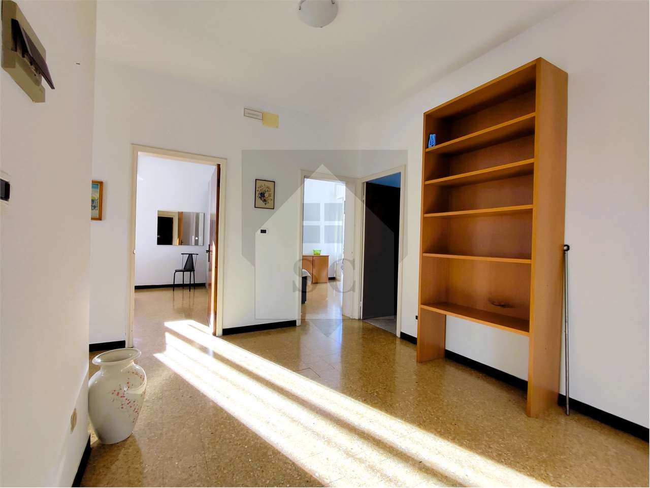 Ha l'ingresso a disimpegno, soggiorno con uscita su balcone, cucina abitabile, tre camere matrimoniali, bagno finestrato.