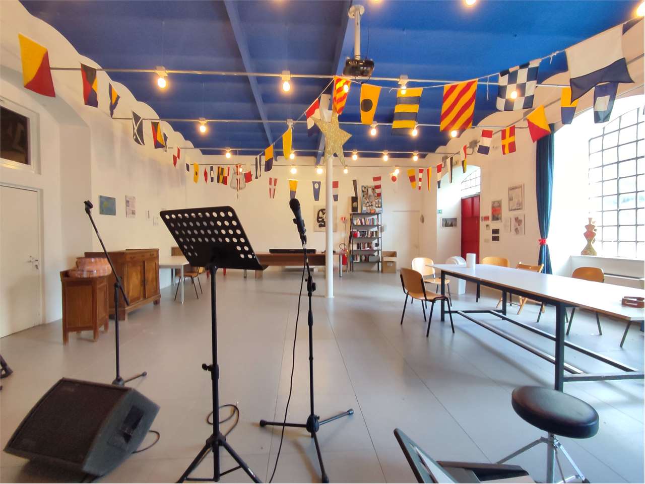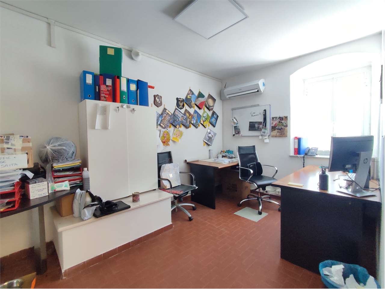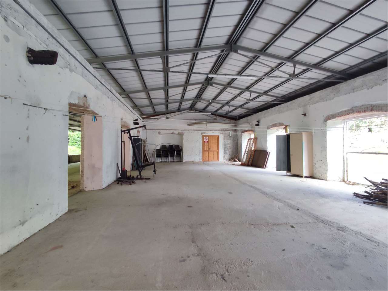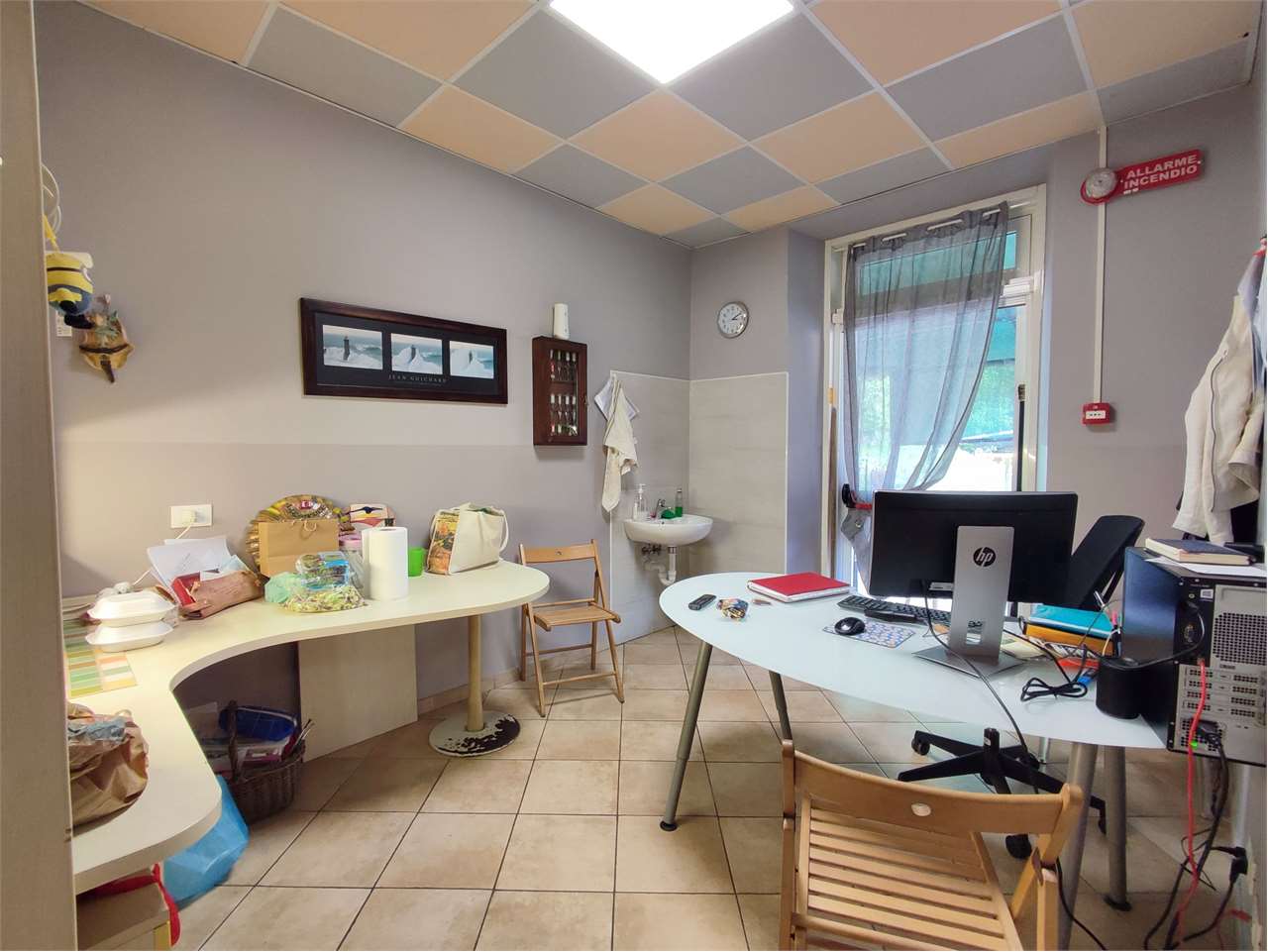 Il piano terreno è adibito ad uffici, sala polivalente e locali tecnici (lavanderia e officina)