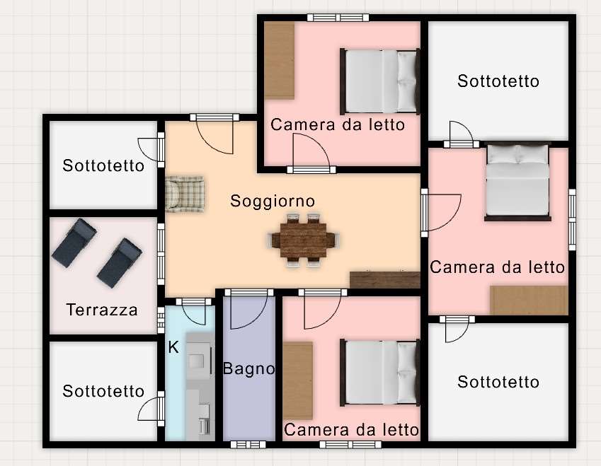 Ha l'ingresso su soggiorno, cucinotto separato, tre camere da letto, un bagno.