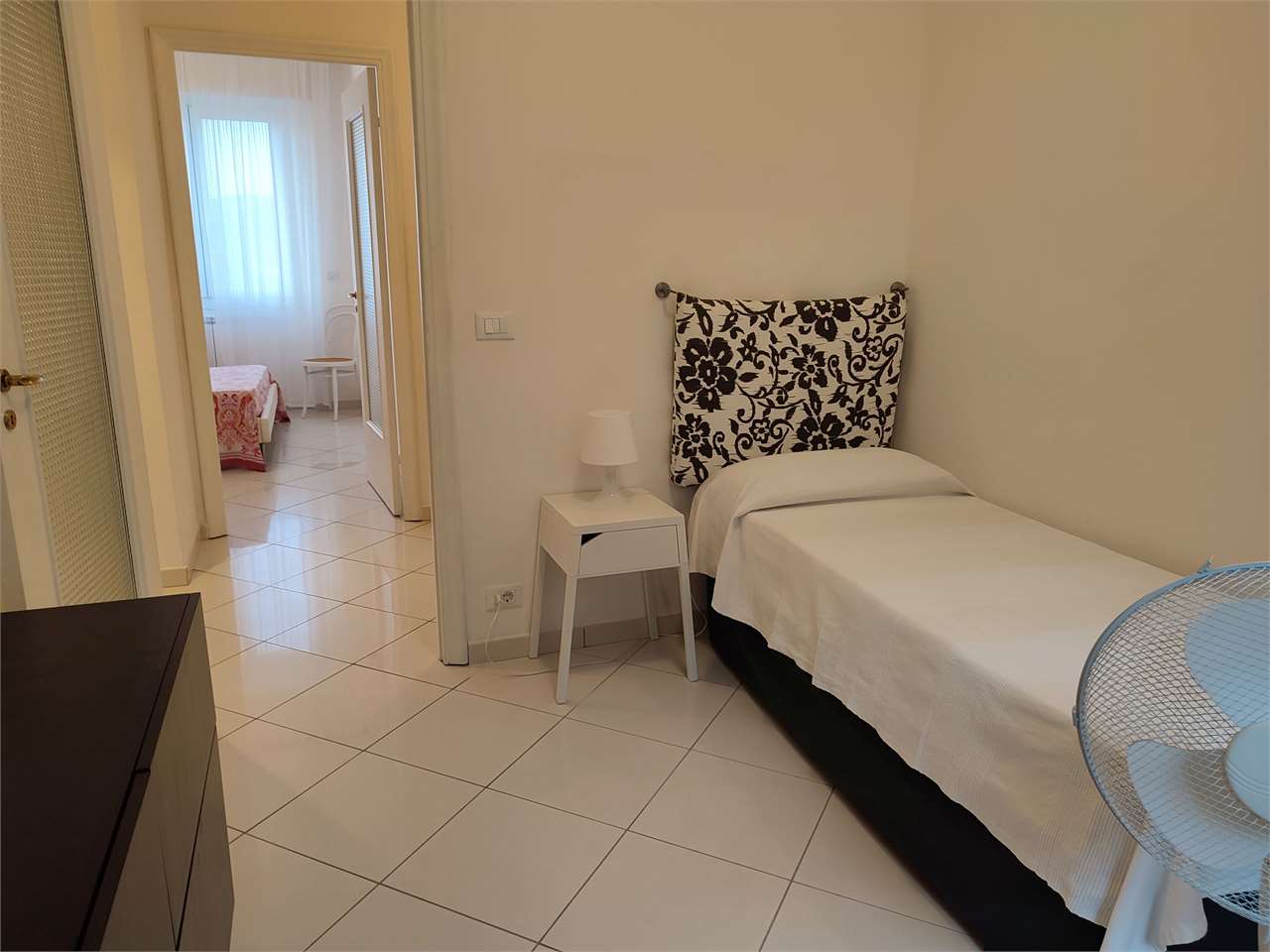 E' composto di ingresso a corridoio, soggiorno, zona cottura completamente attrezzata e dotata di lavastoviglie, tre camere da letto (due matrimoniali, una con letto singolo), dispensa, bagno con piatto doccia.